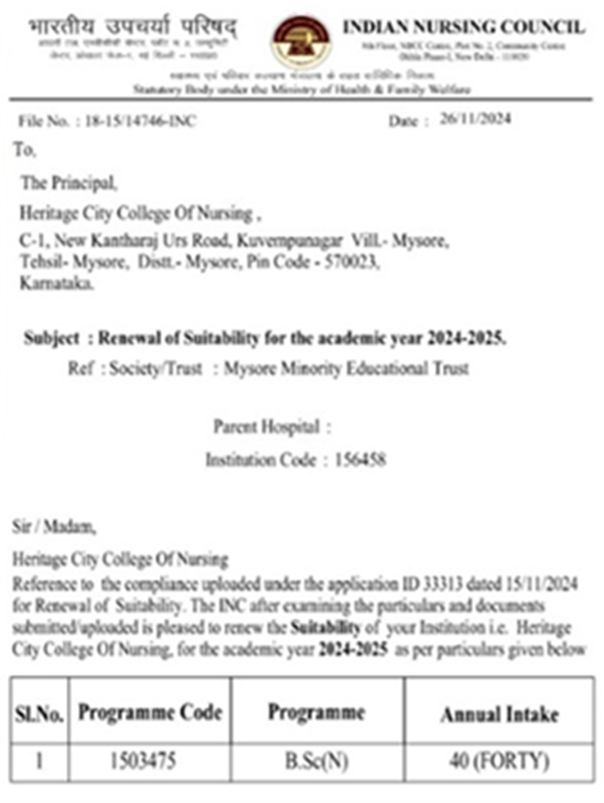 I am extremely happy to be the Principal of HERITAGE CITY COLLEGE OF NURSING a prestigious institute in the heritage city, Mysore.